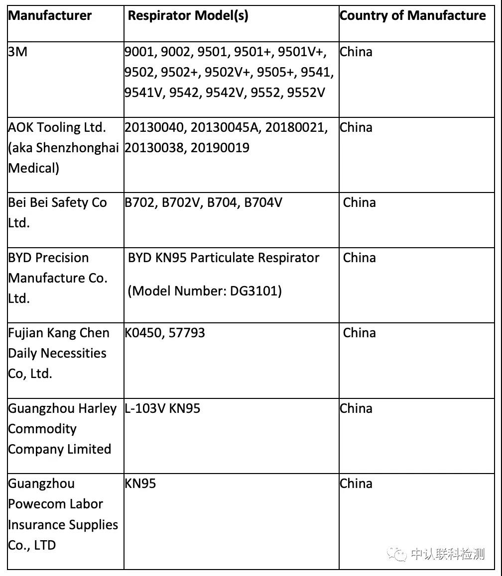 5月7日FDA再次修改了其在4月3日發(fā)布的中國(guó)KN95(FFR)口罩認(rèn)可規(guī)則。并對(duì)之前發(fā)布在白名單(Appendix A)中的產(chǎn)品進(jìn)行了更新,由原本的74家白名單突然只剩下14家了!原因無外乎是根據(jù)最近一次CDC(NIOSH)的抽驗(yàn)結(jié)果,有不少來自中國(guó)的KN95口罩的過濾效率出了問題。下面我們一起來看一下那些廠家經(jīng)住了FDA+CDC的雙重考驗(yàn),仍能留在磅單之上。